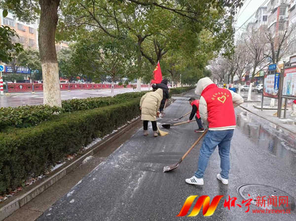 本网讯 2月22日,高河镇出现雨雪冰冻恶劣天气,为消除道路安全隐患,切实保障群众出行安全,高河镇各村(社区)以雪为令,组织辖区党员及志愿者们一起开展“清雪有速度 护民有温度”清雪行动,为居民铲出一条条“平安路”“温暖路”。