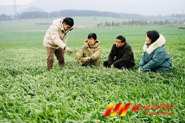 2月26日,在月山镇奇隆村,农技专家深入麦田指导农户春耕春管。一年之计在于春。我县各地农户抓紧农时,积极开展各项农业生产活动,抓住有利时机对大田作物、瓜果蔬菜进行分类田管、科学种植,为农产品稳产保供打下坚实基础。檀志扬 洪胜武 摄