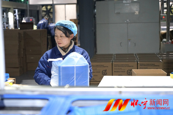 3月7日,在马庙镇双羽新材料有限公司生产车间,工人们正在赶制出口韩国的全降解餐盒订单。随着新春产业“奋进曲”的奏响,马庙镇100余家企业赶工时、抢进度,冲刺龙年“开门红”。檀志扬 丁浩浩 摄
