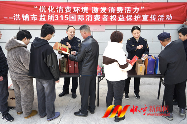 3月11日,洪铺镇市场监督管理所开展纪念“3·15”国际消费者权益日系列活动,工作人现场为群众讲解辨别真假商品、保护消费者权益等相关知识,手把手教群众练就“火眼金睛”辨别真伪,促进消费公平,维护消费者权益。檀志扬 赵林玉 摄