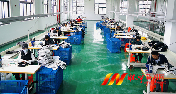 3月18日,在雷埠乡服装产业园里,村民在安徽永驰婴童科技股份有限公司雷埠布套缝制中心作业,实现在家门口就业增收。为缓解春节后企业复工复产招工难问题,扩大求职者就业渠道,推进农村富余劳动力在家门口就近就业,我县积极搭建就业平台,落实落细各项就业服务,促进劳动力供需精准对接,实现农民工就地就近就业。 檀志扬 殷俊 摄